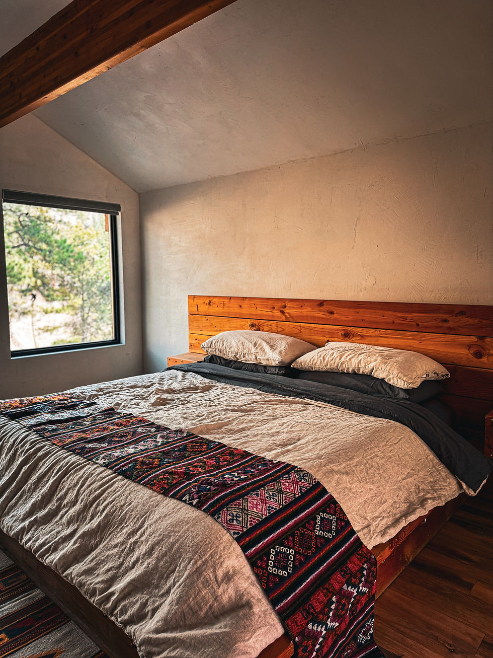 Outside, the faint sound of the creek and forest replaces traffic or neighbors. This quiet presence enhances rest and supports better sleep later in the day.